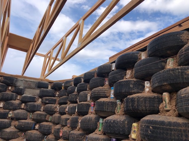 An Earthship is a type of passive solar house that is made of both natural and upcycled materials such as earth-packed tires, pioneered by architect Michael Reynolds on the 1970’s.